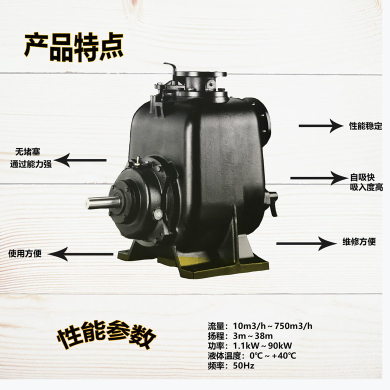 性能穩定、自吸快、吸入度高、維修方便、無堵塞,通過能力強、使用方便